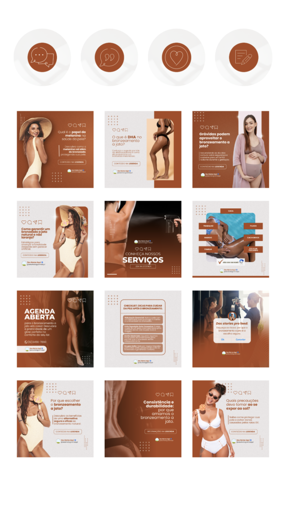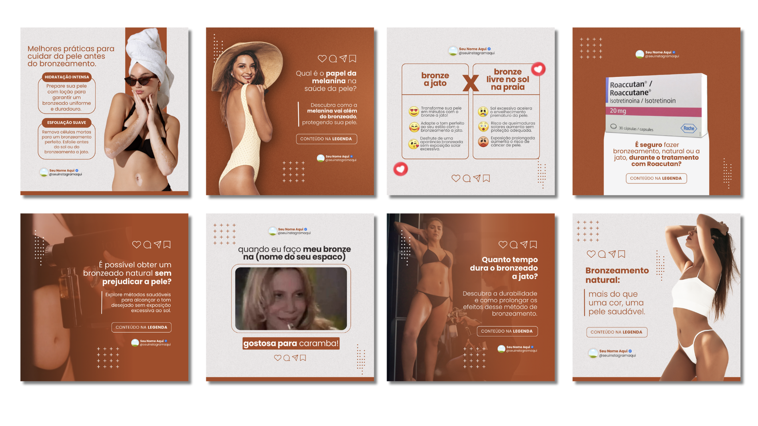 Comece o ano com CONTEÚDO ESTRATÉGICO PARA O INSTAGRAM! COM O PACK BRONZEAMENTO A JATO&NATURAL você terá 60 posts ATRAENTES para expôr seus produtos no instagram de forma PROFISSIONAL!